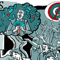 Farage’s cynical portrayal as a man of the people whose party is funded by City Fatcats and Corporate Interests.
